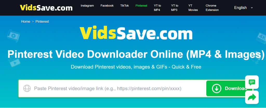 VidsSave is a versatile online downloader that supports a variety of platforms, including Pinterest. Here’s how to use it: